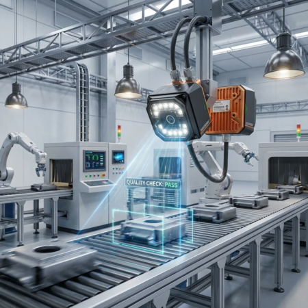اما در سالهای اخیر، ظهور دوربینهای هوشمند (Smart Cameras) تحول شگرفی در این پارادایم ایجاد کرده است. دوربین هوشمند در واقع یک سیستم بینایی ماشین همهدر‑یک (All-in-One) است که حسگر تصویر، پردازنده، حافظه، نرمافزار و رابطهای ارتباطی را در یک بدنه فشرده ادغام میکند. به عبارت دیگر، دوربین هوشمند یک «کامپیوتر مخصوص بینایی» است که دیگر نیازی به PC خارجی ندارد.