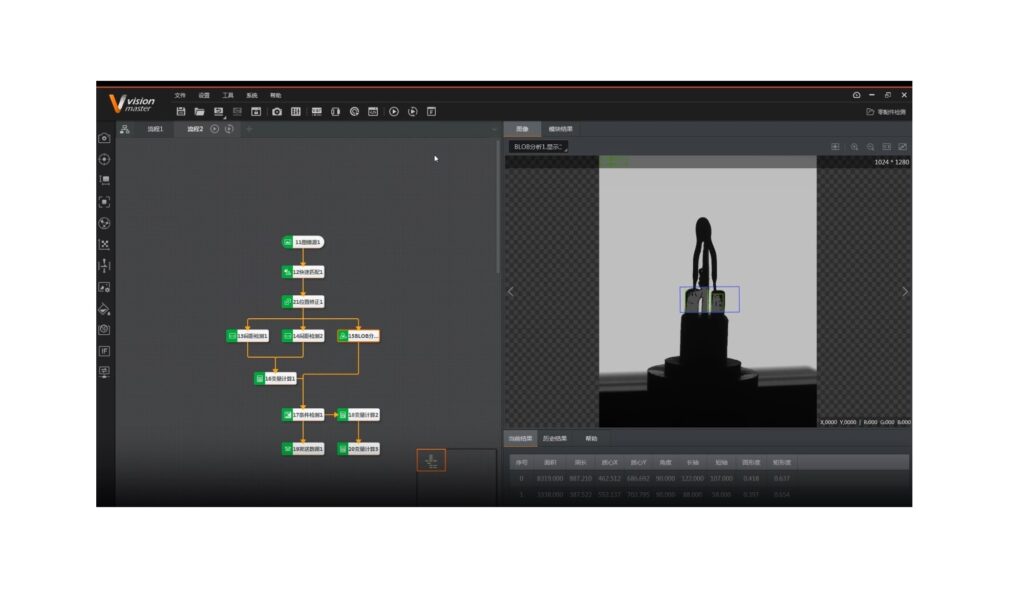 VisionMaster بر اساس فلوچارت (Flowchart) کار میکند. مهندسان میتوانند ماژولهای مختلف را با دراگ-اند-دراپ (Drag & Drop) به هم وصل کنند. این ویژگی سرعت توسعه (Development Time) را به شدت کاهش میدهد. اما برای کاربران حرفهای، امکان اسکریپتنویسی و استفاده از SDKهای C++ و C# نیز وجود دارد.
